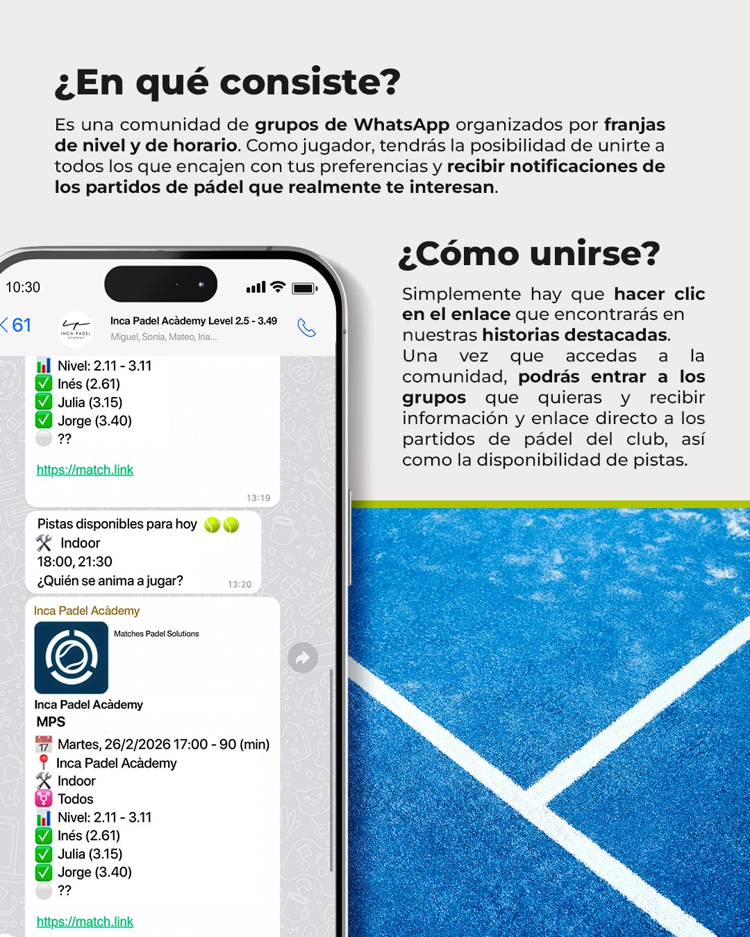 Trabajamos con diferentes clubs de pádel en Palma de Mallorca para que puedas acceder fácilmente a partidos organizados por nivel y horario.